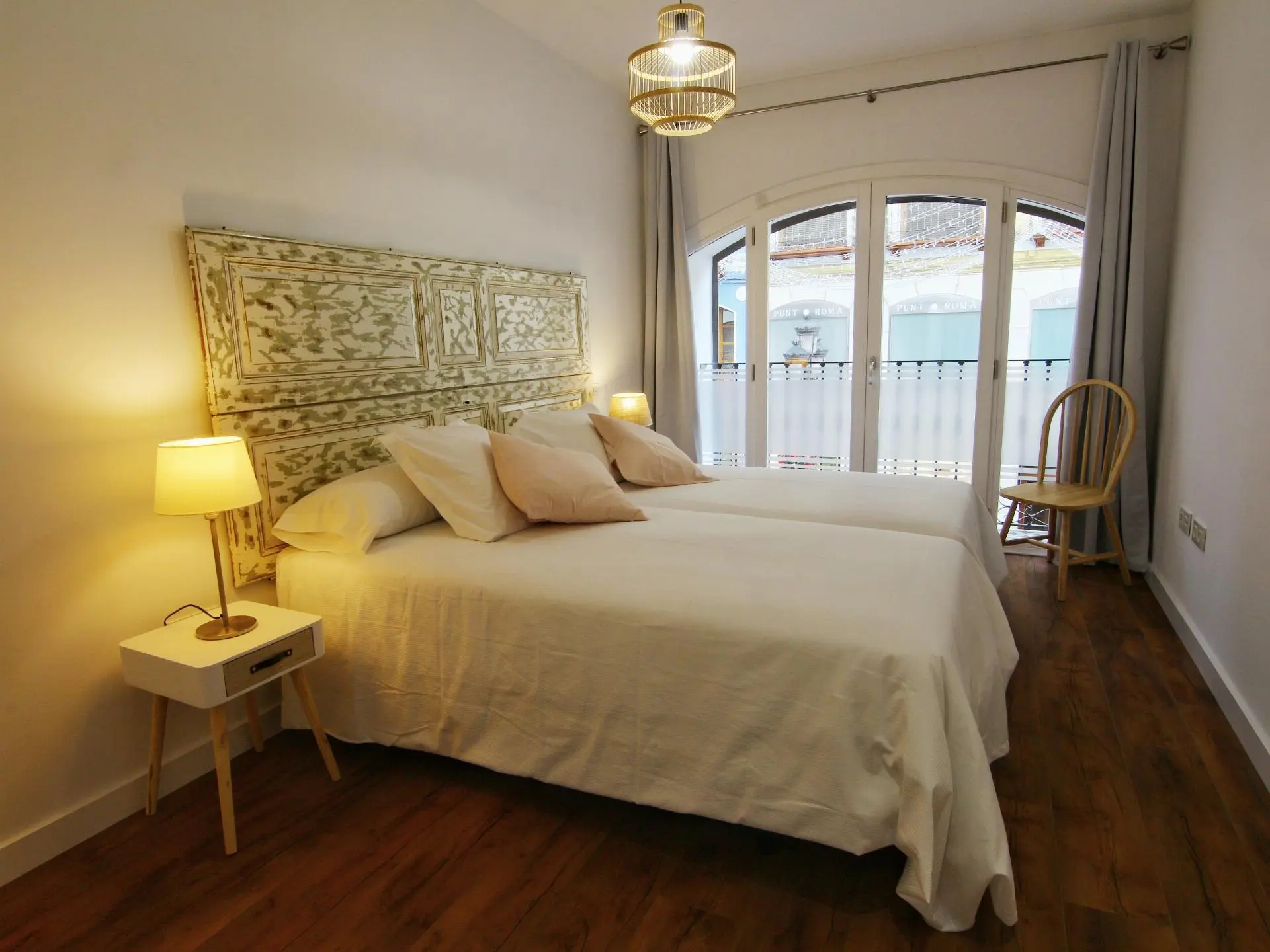 Este cómodo y elegante apartamento decorado en estilo nórdico está situado en la entreplanta de nuestro edificio. Ofrece 45 m2 distribuidos en un dormitorio independiente con dos camas y balcón a la calle Alfonso, salón comedor con balcón, cocina americana y baño con ducha.