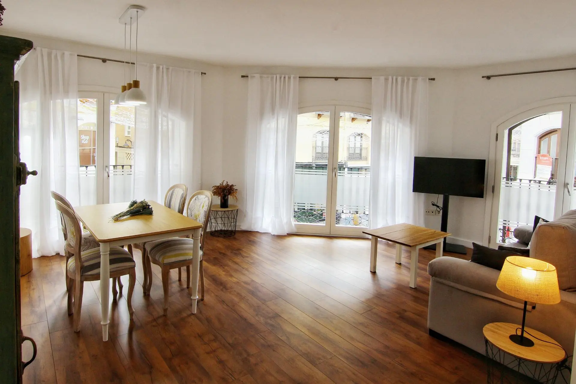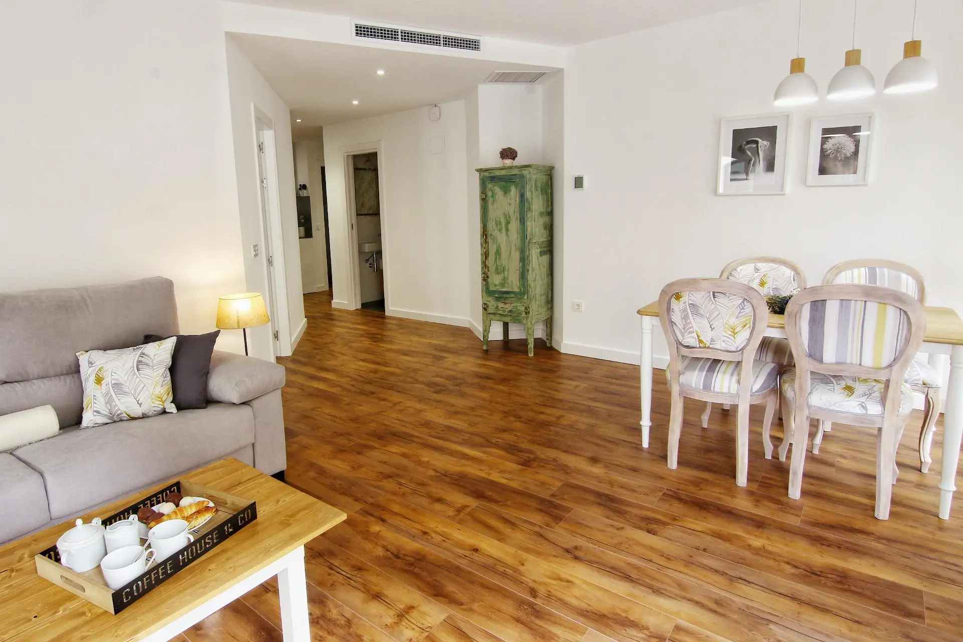 Este cómodo y elegante apartamento decorado en estilo nordic-chic está situado en la entreplanta de nuestro edificio. Ofrece 65 m2 distribuidos en dos dormitorios independientes, uno de ellos con cama de matrimonio y el otro con dos camas (ambos con balcón a la calle Prudencio); salón comedor con balcones a la calle Alfonso, cocina abierta, baño con ducha y aseo.